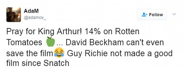 Jedan korisnik Twittera napisao je: "Molite za kralja Arthura jer David Beckham ne može spasiti film".